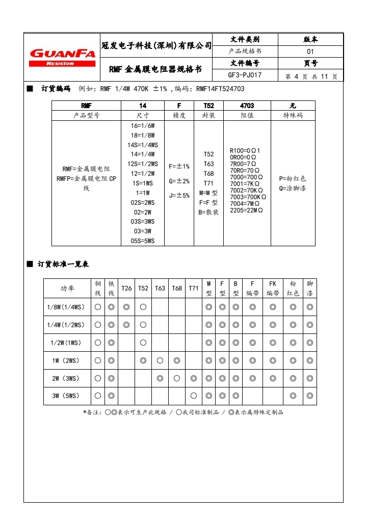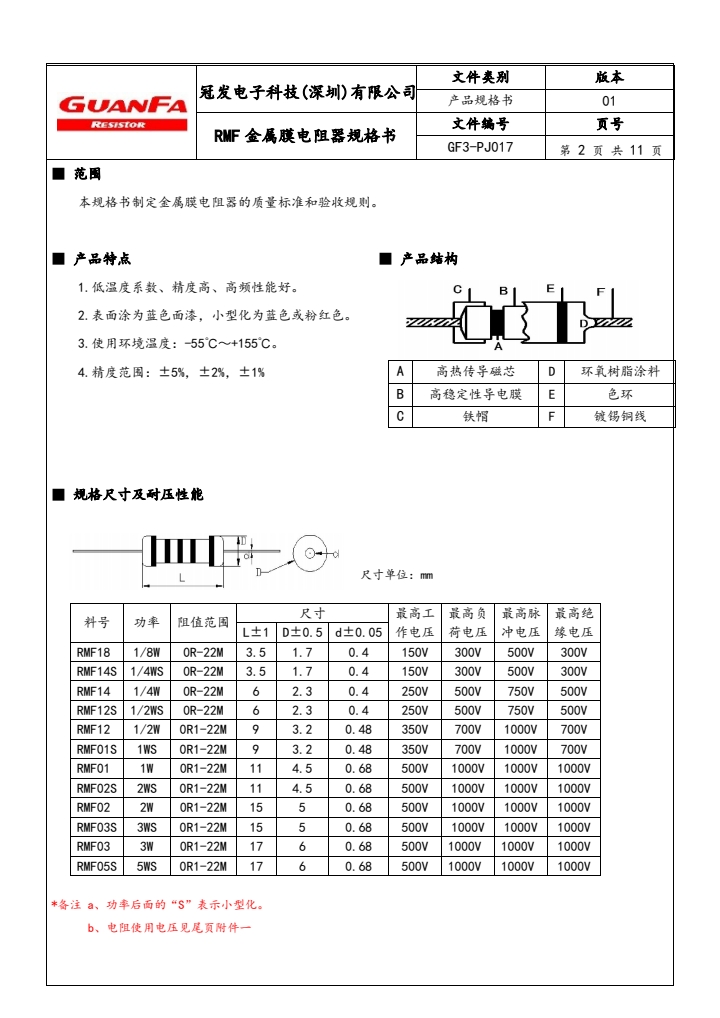 狗子28备注:阻值范围会因功率不同而有所变动,图册均标示我司可供应范围,特殊需求详情请洽询冠发科技